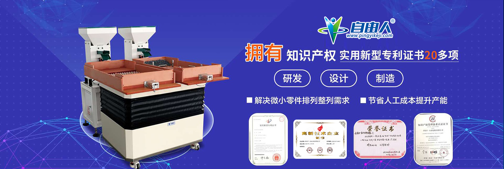 青島平一自動化科技有限公司是一家致力于精密零件智能整列裝備的高新技術(shù)企業(yè),公司核心專利技術(shù)產(chǎn)品自由人整列機已進入蘋果和華為手機零件工廠,整列機主要應(yīng)用于微小零件的排列、組裝、表面檢查、吸塑盤包裝、載帶包裝、噴涂、充磁等自動化作業(yè)。